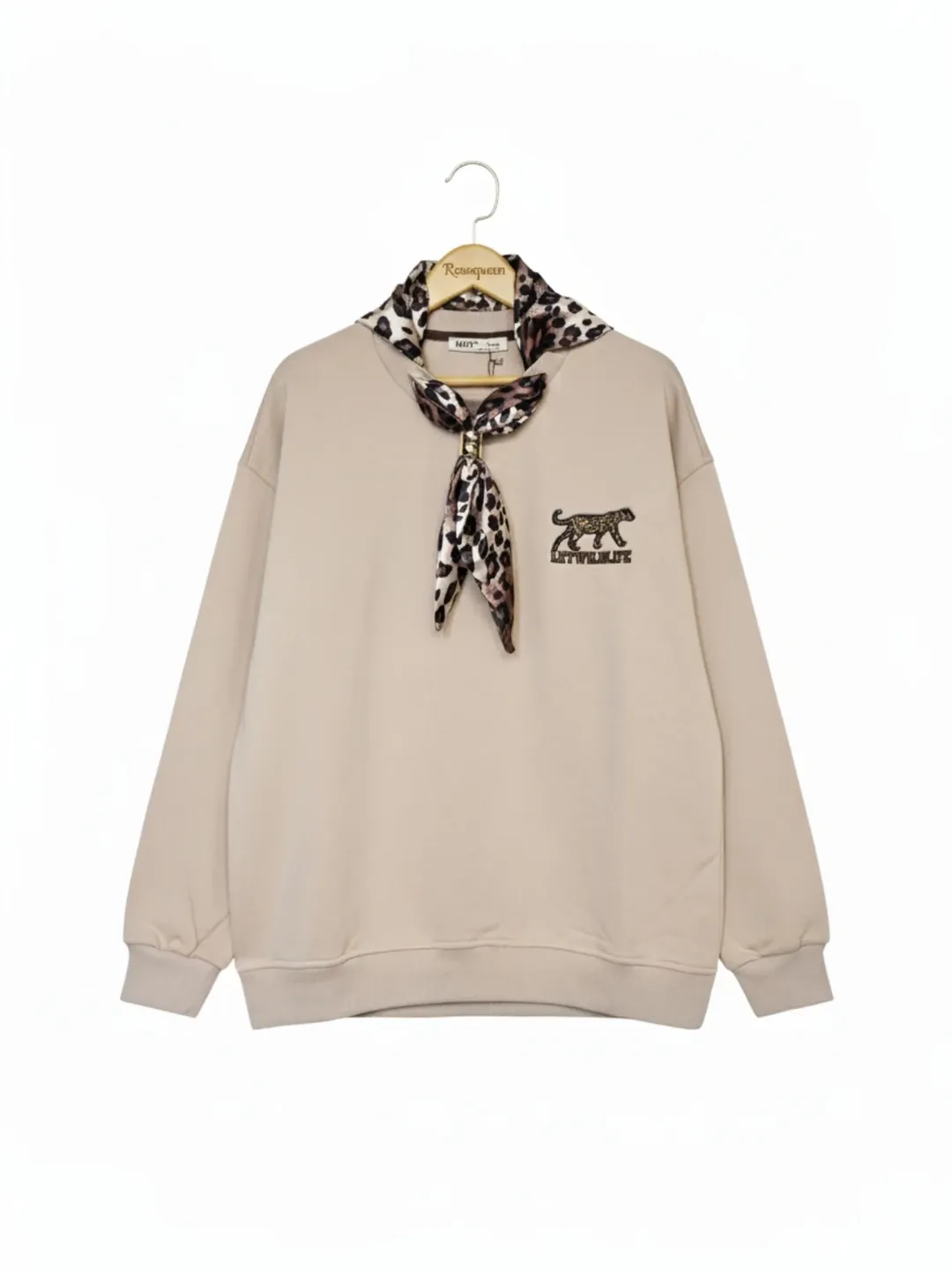 ناموجوددورس کرم با اسکارف ساتن پلنگی سایزبندی S / M / L