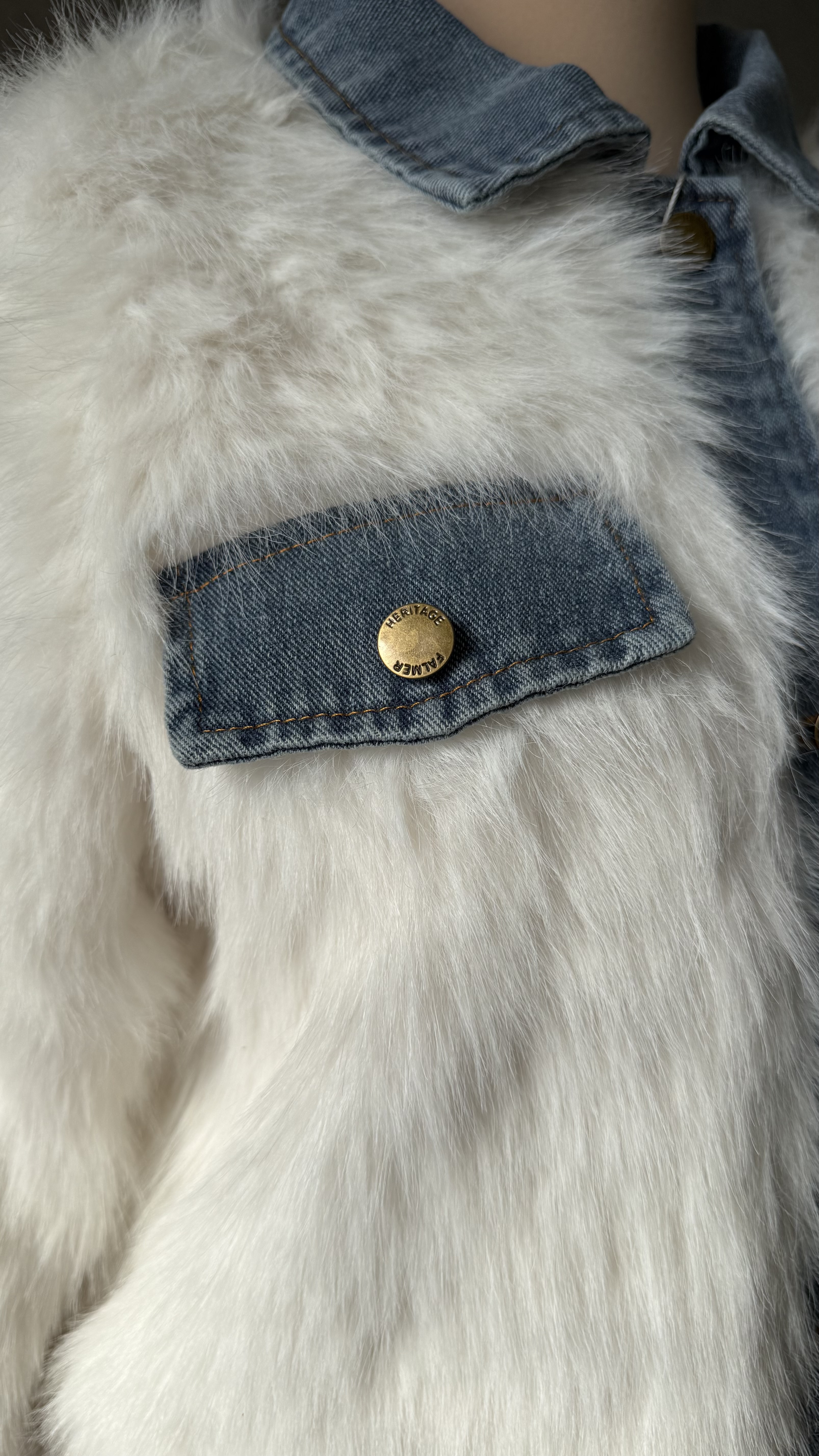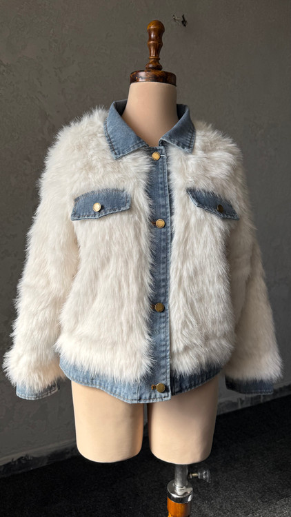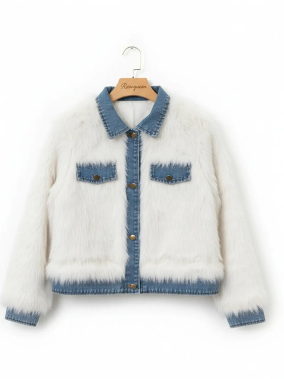 وقتی خز لطیف و جین ترکیب میشه نتیجهاش یه کراپ کت میشه که امضا استایل رز کوئین کیفیت مستر کوالیتی فری سایز | تنخور خوشفرم خز گرم و نرم برای پاییز و زمستون